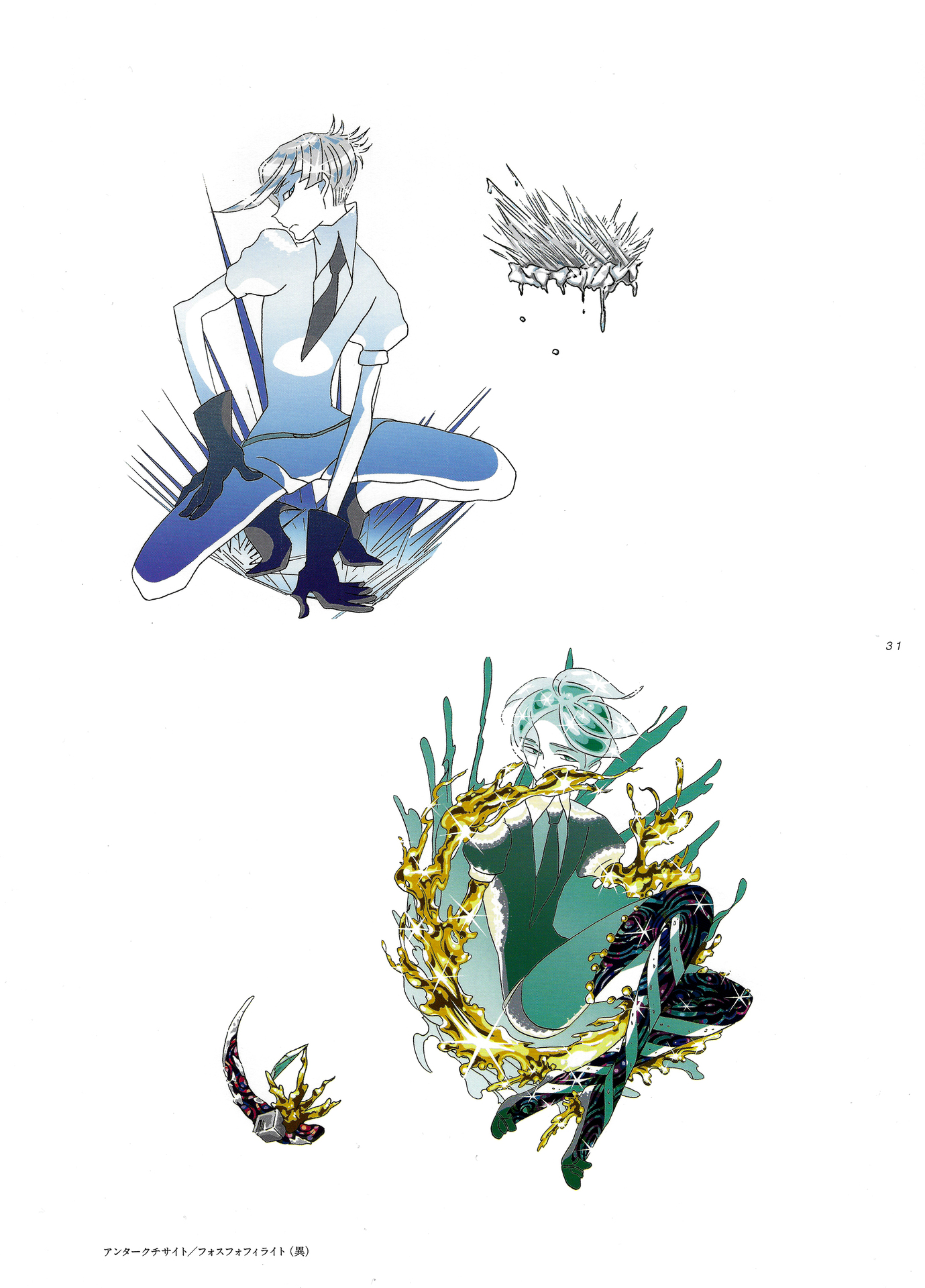 Далёкое будущее. После серии катаклизмов Земля окружена шестью лунами и почти полностью покрыта океаном. На крохотном островке суши обитают 28 представителей новой расы — самоцветов. Но и они вынуждены непрерывно бороться за существование с обитателями лун. Это история сильных, хрупких и красивых созданий.