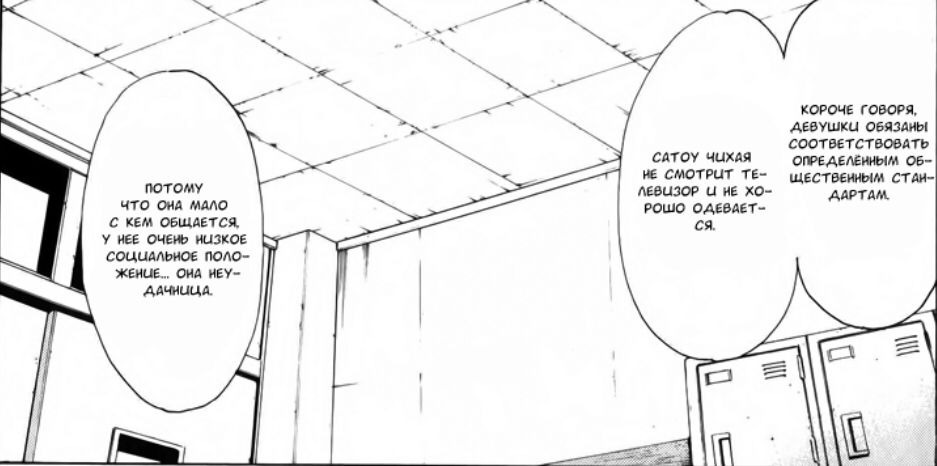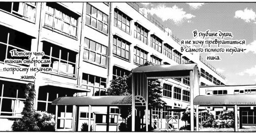 Но такая система довольно не плохо показана от глаз Главного героя. Большую часть глав мы следим именно за главным героем, который от роду своей является тем самым "Неудачником". Его привычки странные, действия зачастую не подаются логике, а то, что он считает некоторых людей "мусором" из-за их профессий, деятельности и личности - показывает его натуру. Как продемонстрировано в самой манге: