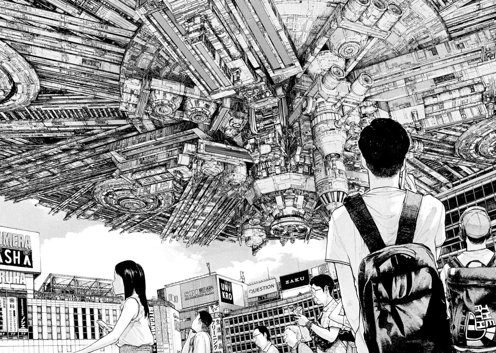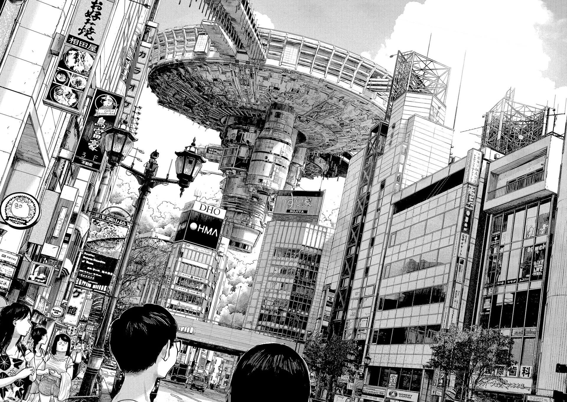 Однако я не рассказал про очень важный элемент, который присутствует в манге. Всё вышеперечисленное происходит в современной Японии, в которую вот уже как несколько лет ВТОРГЛИСЬ ИНОПЛАНЕТЯНЕ.