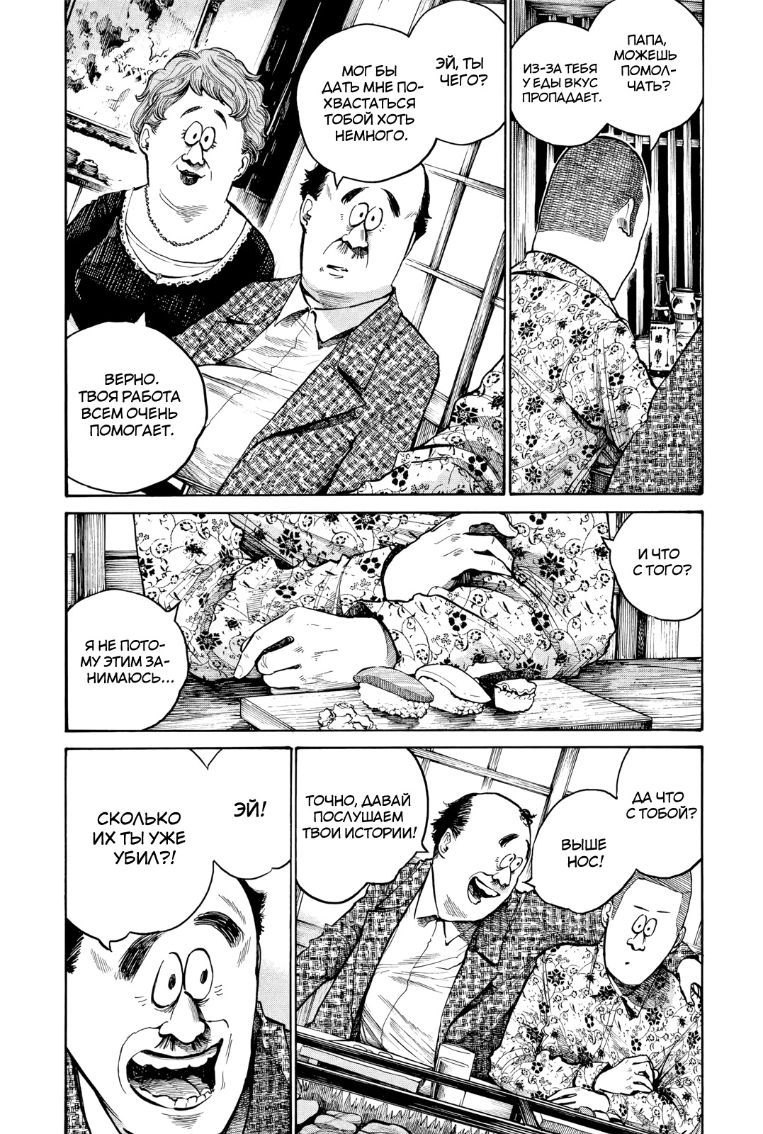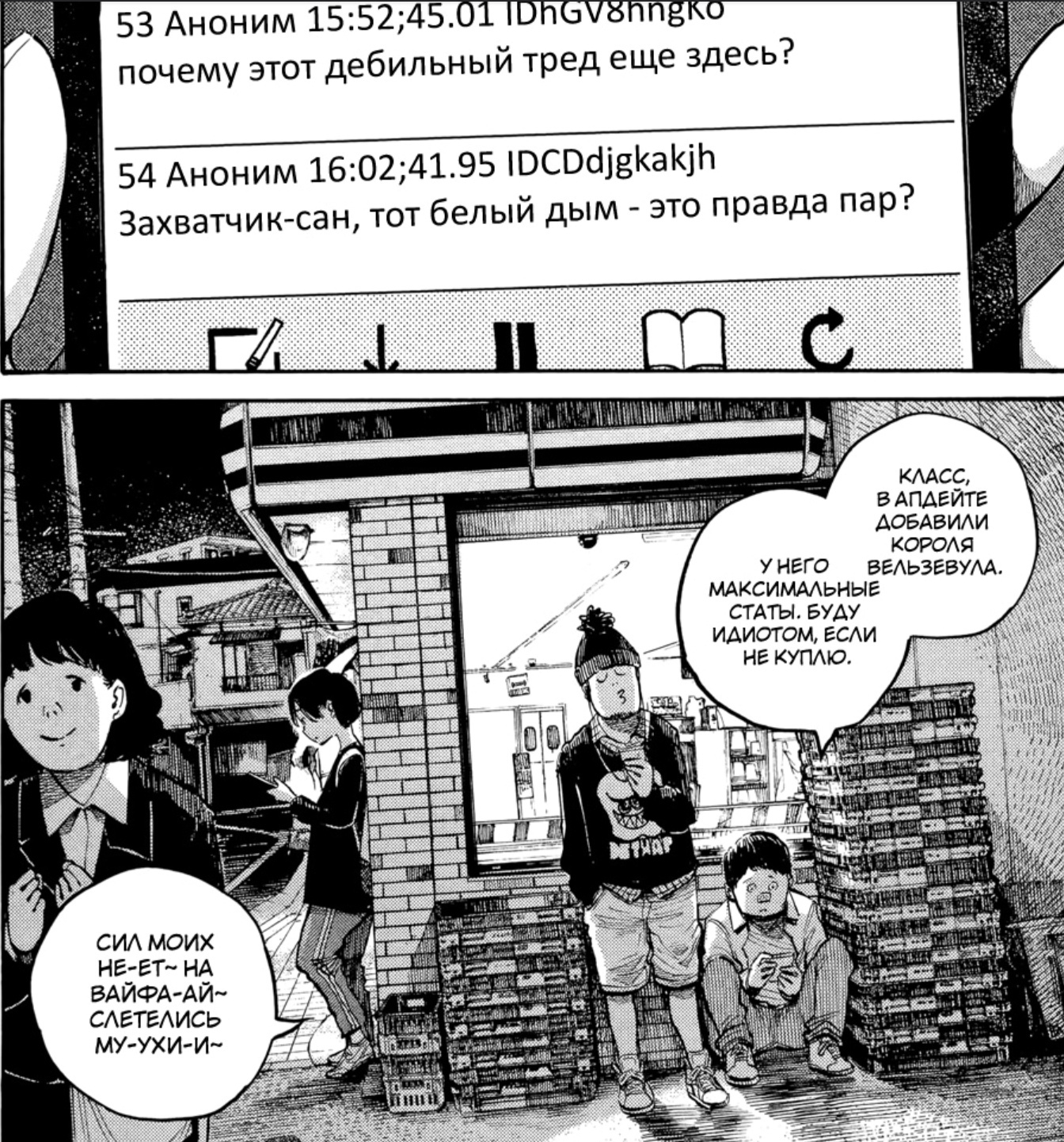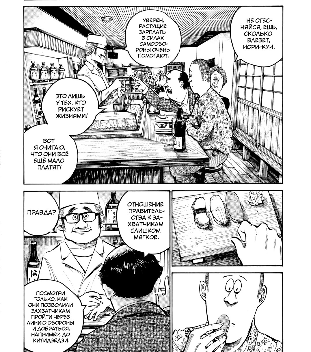 В заключение скажу, раз вы дочитали до этого момента, то можете смело начать читать мангу, вы не пожалеете. Это очень забавная и трогательная манга про обычных, но очень сильных людей, за которыми вы будете переживать. А так же же вы будете смеяться над сатирой и иронией над современным обществом, что тут высмеяно, как например в сериале «Пацаны».