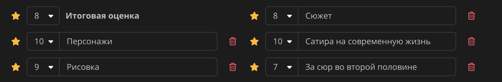 А вот такие оценки я бы поставил тайтлу за его достоинства и недостатки: