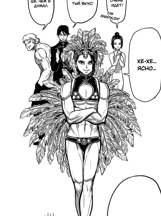 Бои в Кэнган Асуре, все также лучшая ее часть. Хоть тут и есть своеобразная отсебятина автора. Все же он не ударяется в традиционные японские боевые искусства, как Кэйсукэ Итагаки. Тут тебе и Джиу-джитсу и бойцы без правил, про-реслинг, бокс, выдуманные стили автора и так далее. Но и без традиционных японских боевых искусств не обошлось, вроде того же сумо. А следить здесь за боями, одно удовольствие.