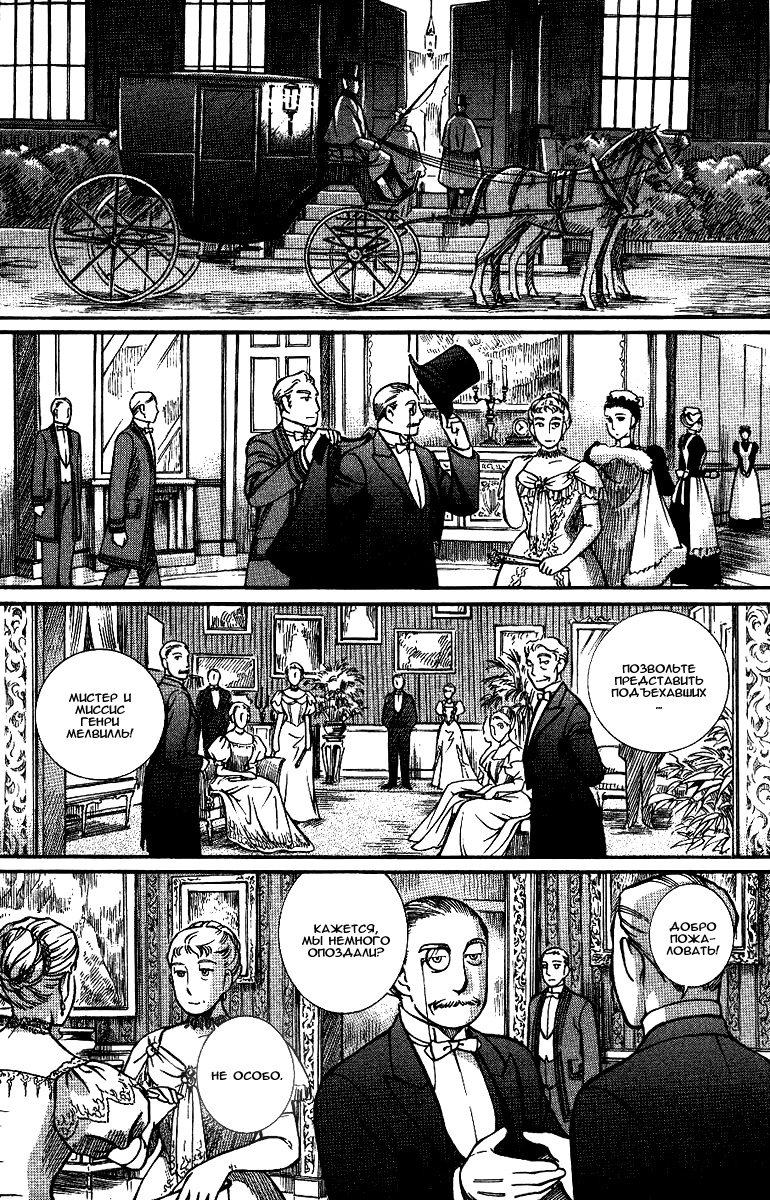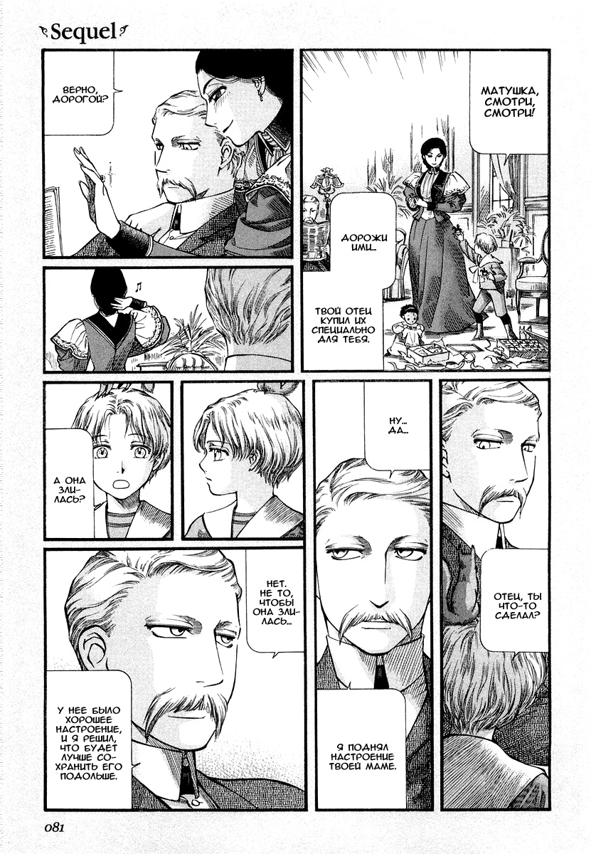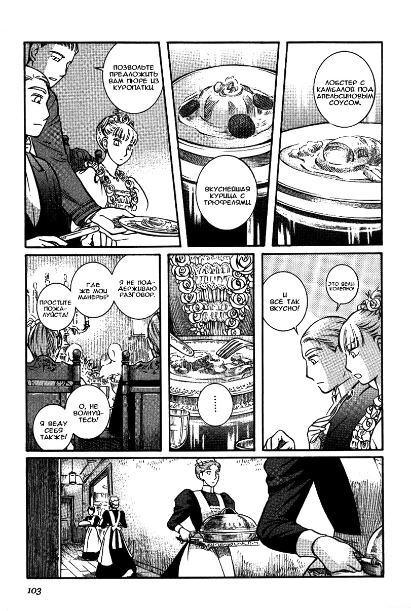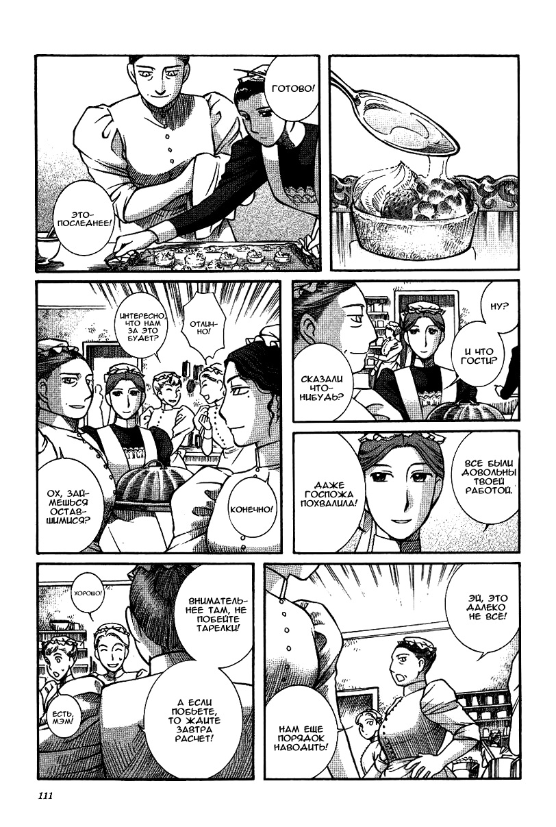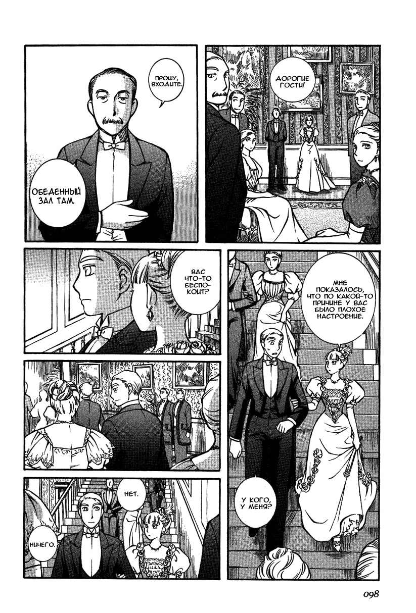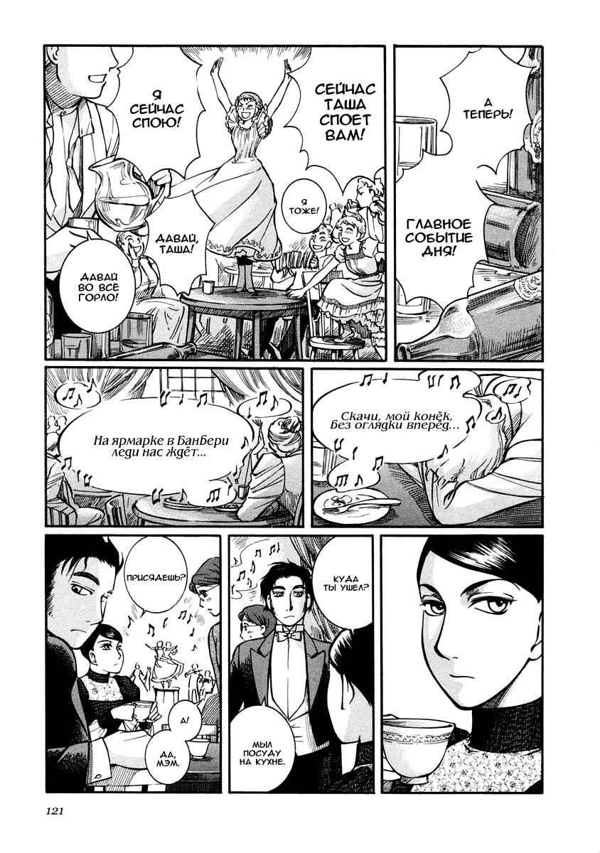 Однако если все так, то чем же мне понравилась эта манга, что я аж отзыв решил написать по ней? А понравилось мне как тут очень атмосферно и правдоподобно показана жизнь и быт людей проживающих в ту эпоху. Ну как правдоподобно, тут нету чернухи, где обычные рабочие напиваются и бьют женщин и детей, а господа не перетрахивают всех своих служанок и имеют уйму бастардов, так что правдоподобно с положительной стороны показано, немного с детской наивностью) Как и говорил ранее это очень доброе, тёплое и уютное произведение) Например мне очень нравится как показаны тут балы, как о том о сём говорят аристократы по типу охоты или магазинчиков, как молодые люди нервничают во время своего первого выхода в свет, как друг друга знакомят с новыми лицами и обретают новые знакомства для будущих дел или женитьбы и так далее по мелочи, что в целом неплохо нас погружает туда.