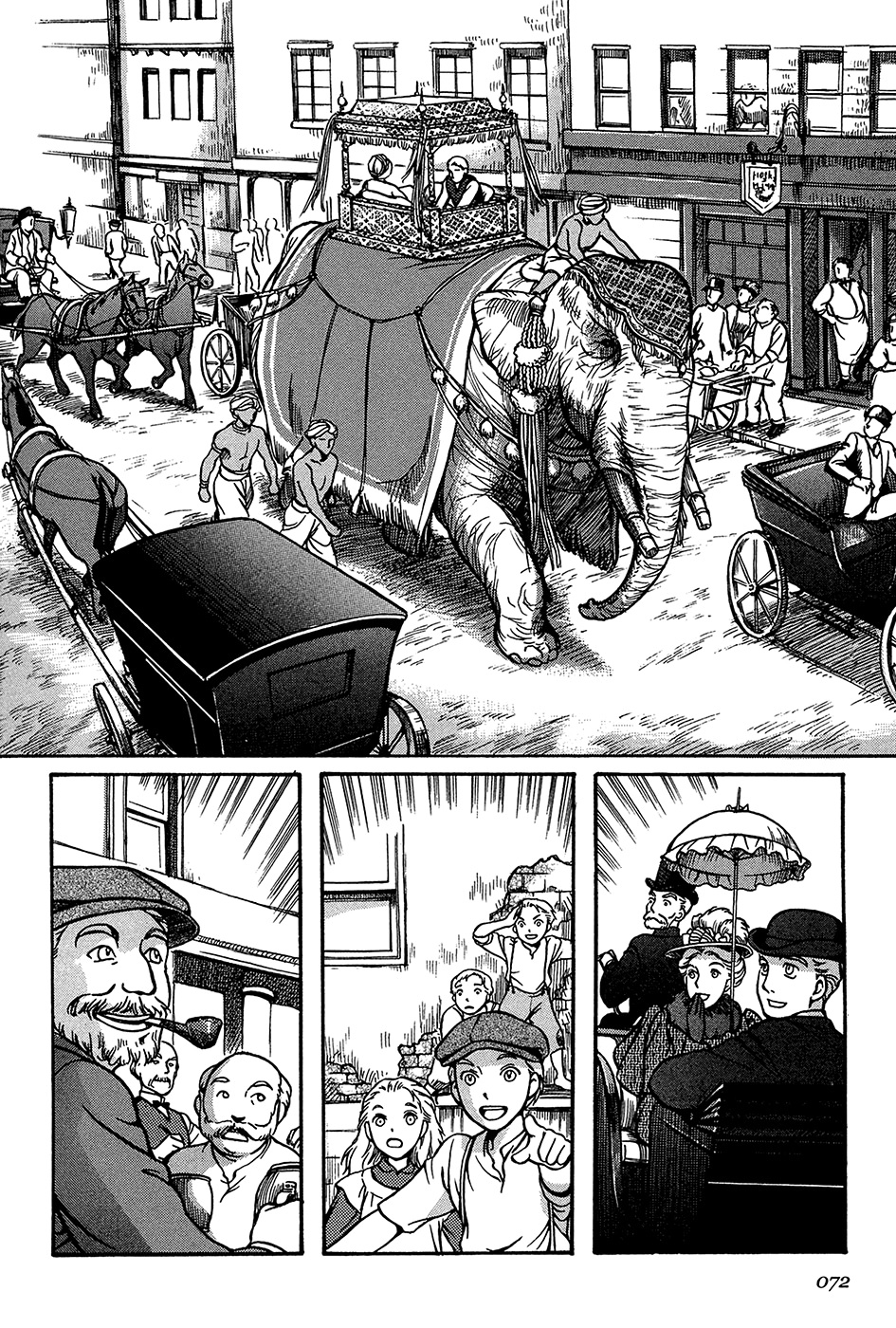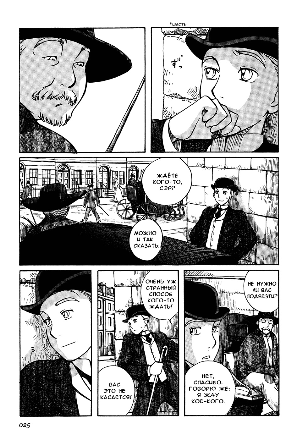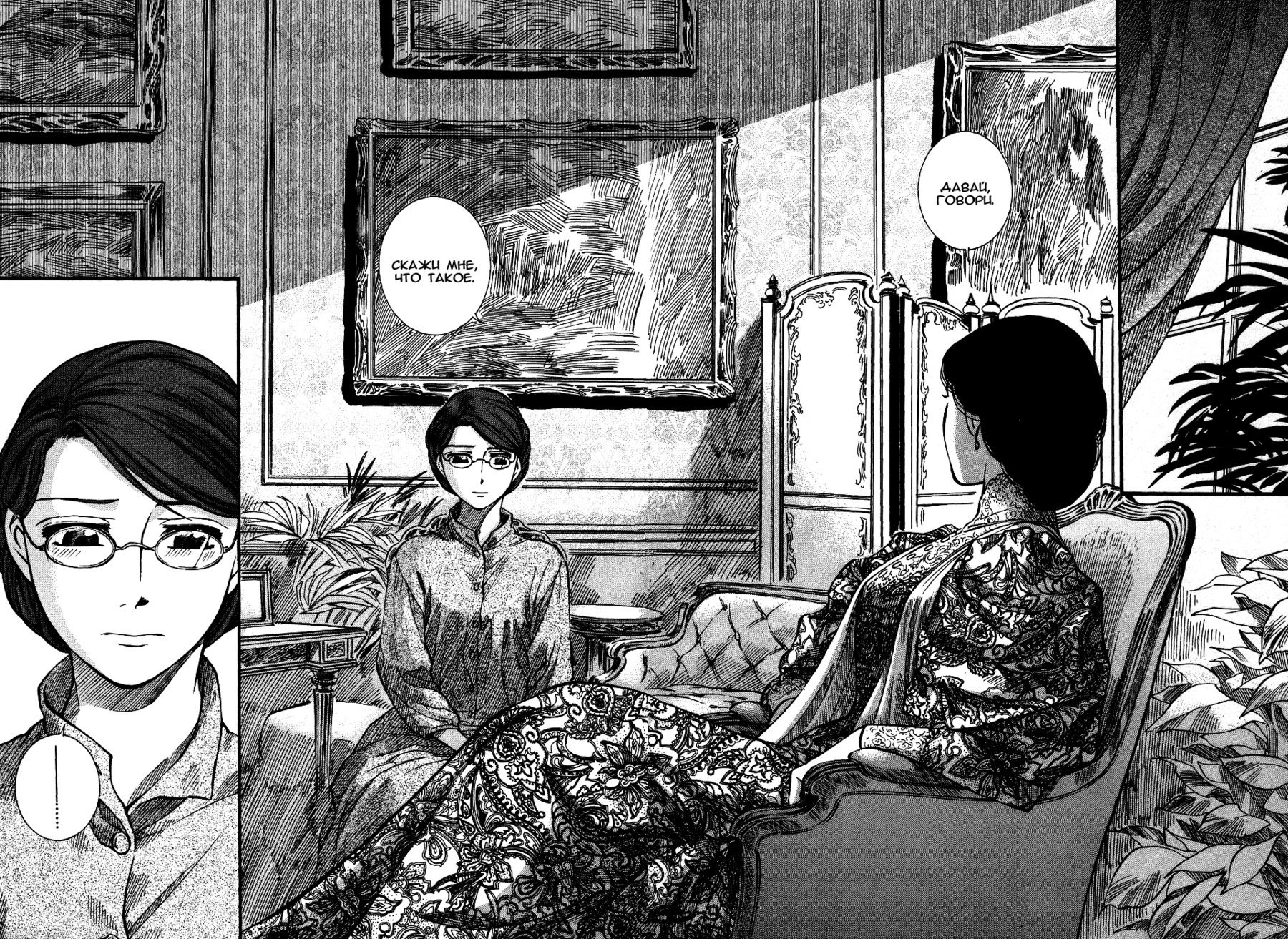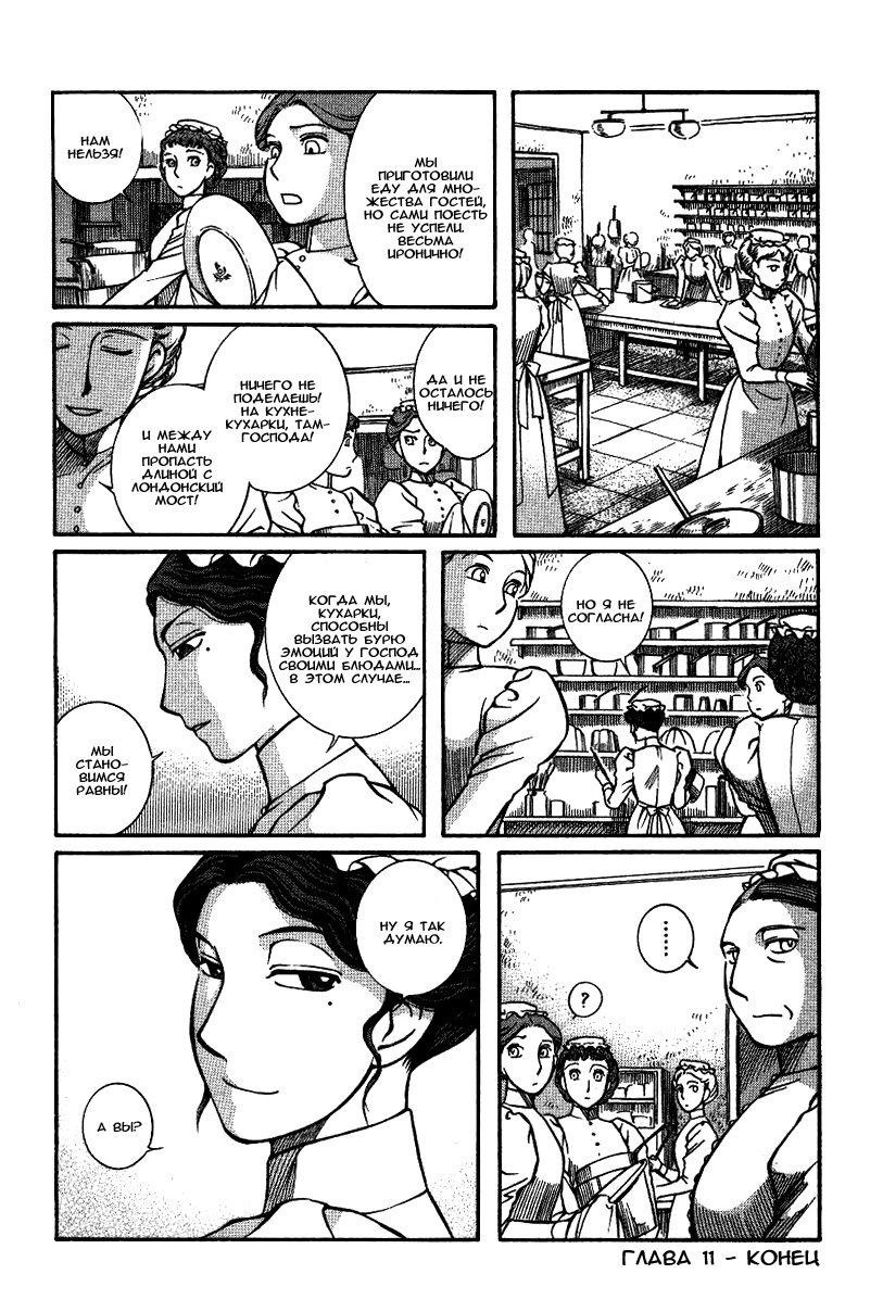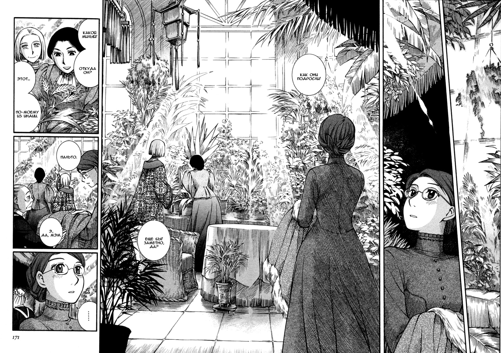 Однако если все так, то чем же мне понравилась эта манга, что я аж отзыв решил написать по ней? А понравилось мне как тут очень атмосферно и правдоподобно показана жизнь и быт людей проживающих в ту эпоху. Ну как правдоподобно, тут нету чернухи, где обычные рабочие напиваются и бьют женщин и детей, а господа не перетрахивают всех своих служанок и имеют уйму бастардов, так что правдоподобно с положительной стороны показано, немного с детской наивностью) Как и говорил ранее это очень доброе, тёплое и уютное произведение) Например мне очень нравится как показаны тут балы, как о том о сём говорят аристократы по типу охоты или магазинчиков, как молодые люди нервничают во время своего первого выхода в свет, как друг друга знакомят с новыми лицами и обретают новые знакомства для будущих дел или женитьбы и так далее по мелочи, что в целом неплохо нас погружает туда.