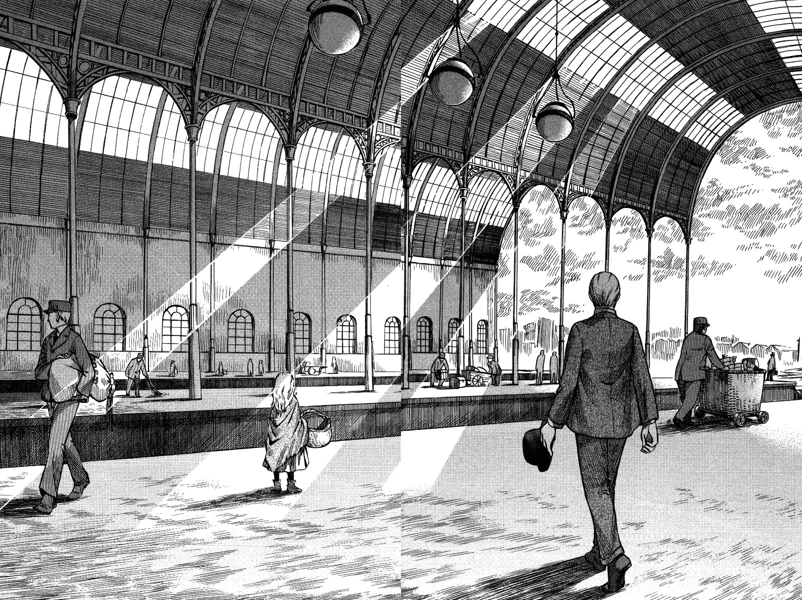 Здесь в принципе вы увидите все клише мыльных драм над которыми сидят и смотрят домохозяйки перед телеком во время отдыха— от любовных треугольников до опоздания на поезд, в котором она уезжает. Здесь я долго дулся сфигали разворот разделили, а когда склеил, то понял, что это реально две отдельные странички, а не разворот, но решил оставить так, так как выглядит более масштабно, как будто Уильям теряется в огромном пустом мире, в котором выступает вокзал.