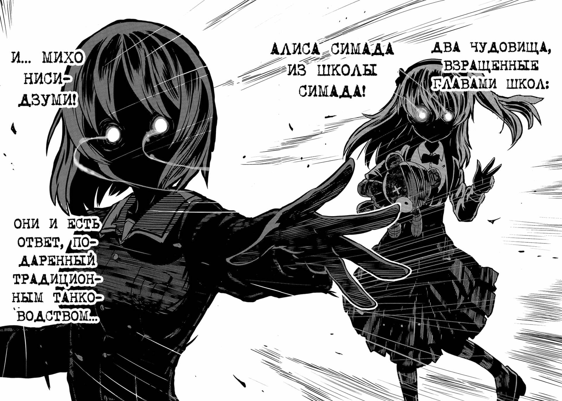 Достаточно посмотреть на современные турниры по тамэсигири или кендо, уж не говоря про более понятные соревнования по каратэ или дзюдо, чтобы понять насколько автор прав. Именно эти (и некоторые другие) мысли, показанные через веселую вселенную со школьницами на танках, делают мангу крутой по моему мнению. Так же это отлично дополняет вселенную оригинала, ведь вся история началась под влиянием на общество побед Михо Нисидзуми, которая побеждала именно потому что не придерживалась традиционных взглядов на танководство.