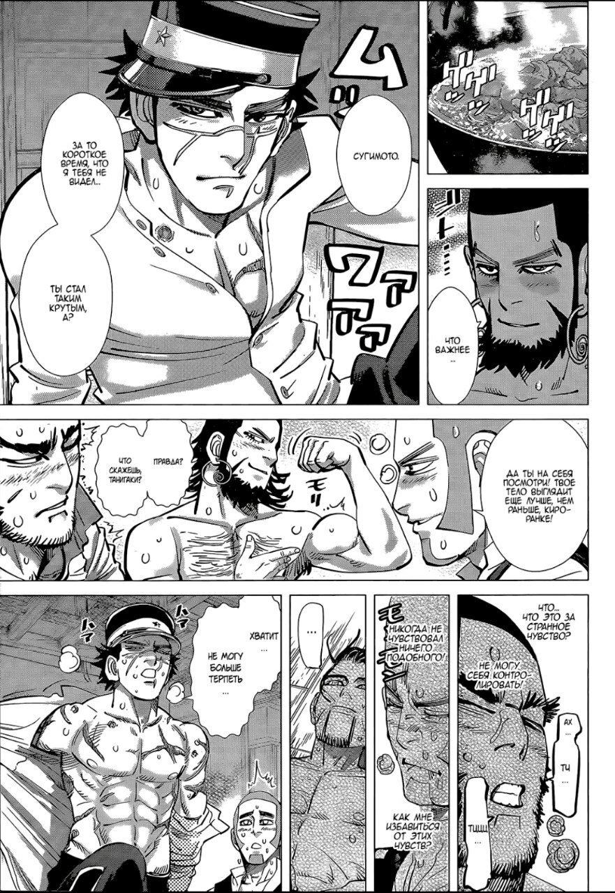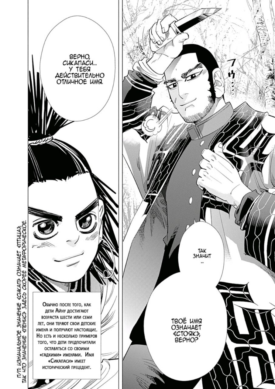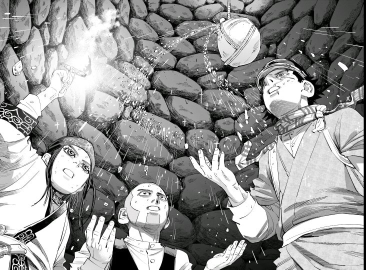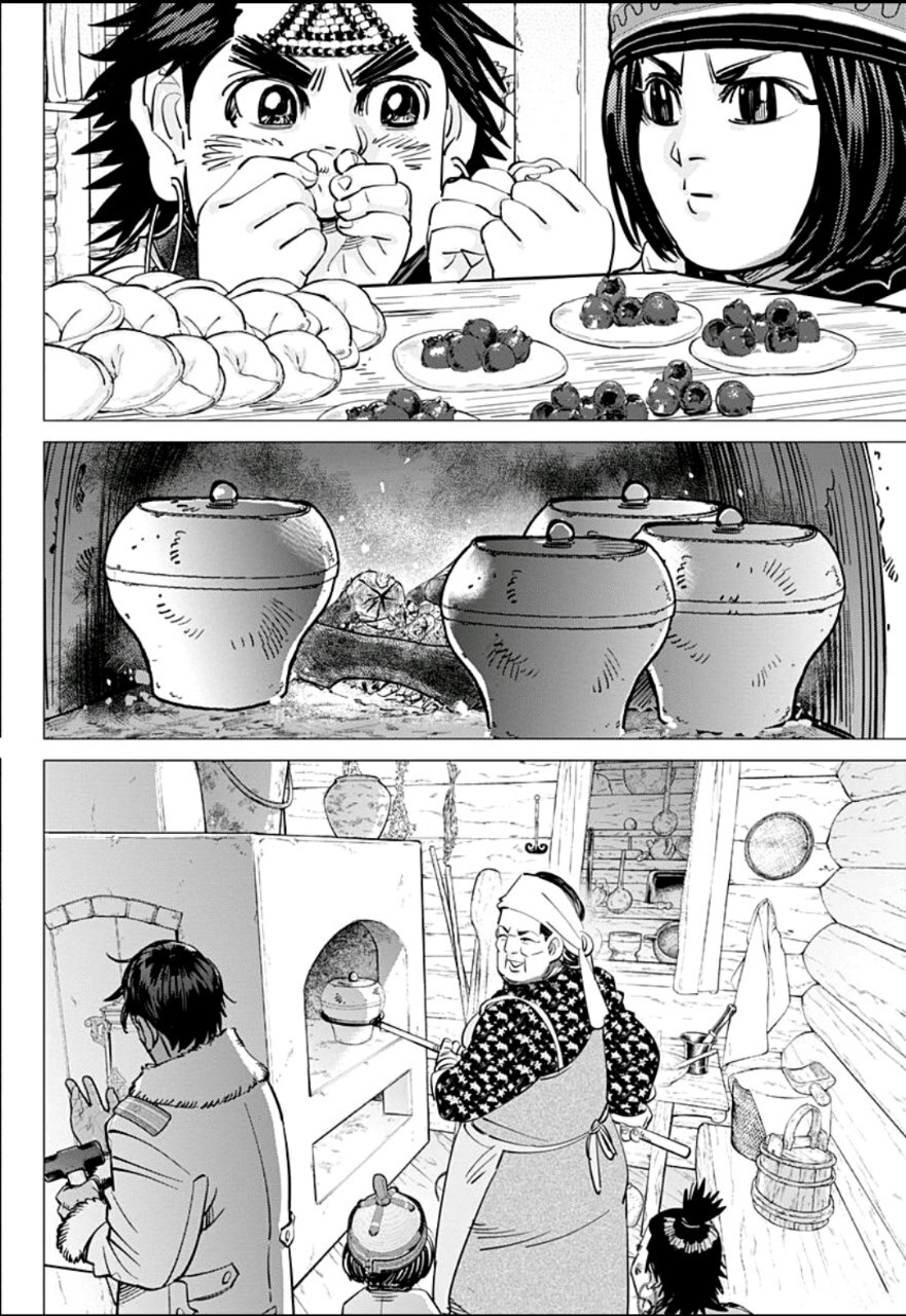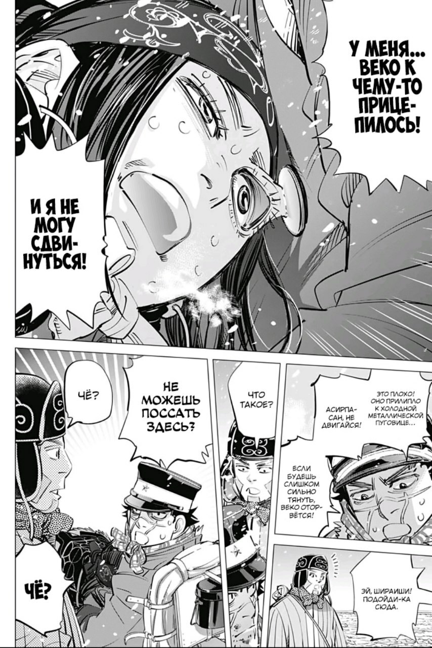 А какой тут юмор! Вы думаете тут только жесткач? Да нифига, тут лютую половину тайтла тащит именно юмор. Он тут чернушный как очко негра, пошлый и туалетный, однако бывает и милый) Тут Асирпа может угарать на Сугимото, что он есть осому (навоз), а это мисо, но она на всей протяжении манги будет считать его калоедом)