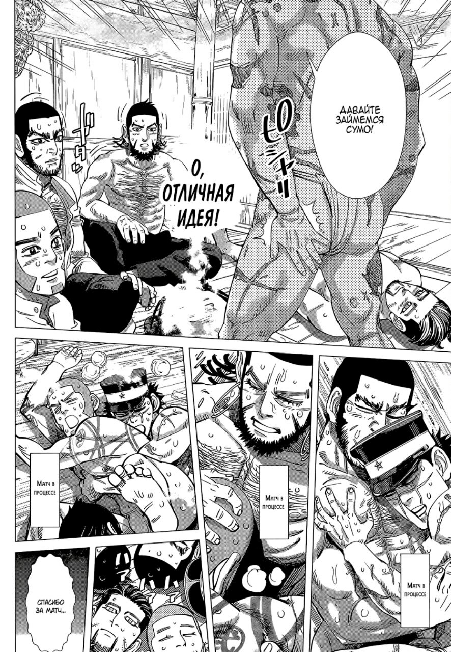 А какой тут фансервис! На моей памяти тут как минимум 3 сцены с нашими красивыми голыми мужиками в позах поэффектнее, чем в Джоджо! Тут в одной сцене им дали сварить мясо выдры в закрытом помещении, а она выделяет феромоны для возбуждения и наши герои от перевозбуждения раздеваются и потными начинают заниматься сумо) Как говорится никакого гейства экстремизма, только чисто мужской сэкс.