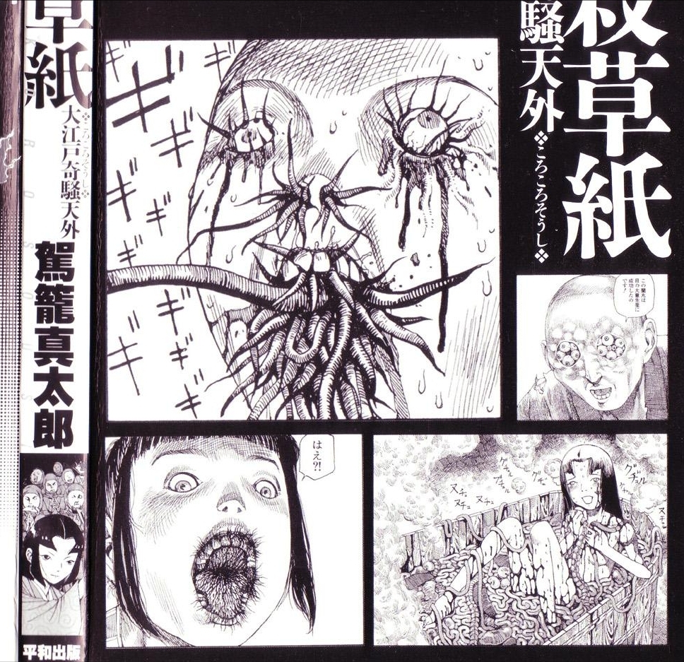 Нет, все не так просто как вы могли подумать. Это не очередная треш манга для больных, как я, извращенцев (хотя это она). У тайтла есть уникальная фича, что он смешивает лютую жесткость ради жестокости, боди-хоррор и, внезапно, юмор. Это очень смешная манга, преимущественно с упором в комедию. Юмор достигается за счет абсурдности происходящего, когда автор показывает нечто настолько глупое и оторванное от реальности, что ты перестаешь воспринимать читаемое серьезно, и смотришь на страницы с улыбкой. Например в манге есть сцена, где крестьяне дерутся за отрубленный член, и пытаясь не дать его заполучить друг-другу, действо превращается в хоккей, с сами понимаете какой шайбой