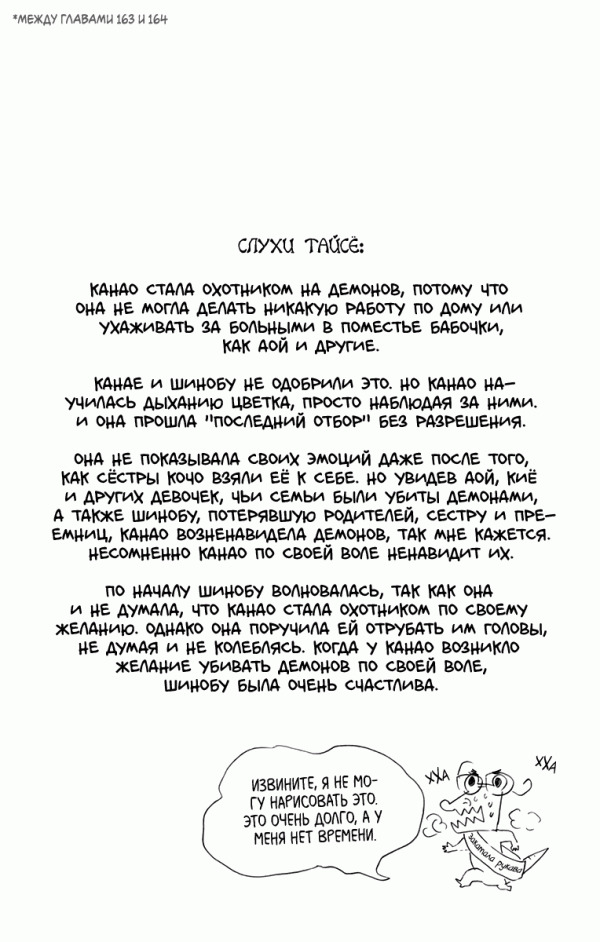 Танджиро настоящее, один из тех особенных главных героев, за развитием которых действительно интересно наблюдать, и пусть всё происходит , это ничуть в истории, а его способность сопереживать не демонам, а людям, которыми те когда-то были, потрясающе показана автором в еле незаметных особенно трогательных деталях.