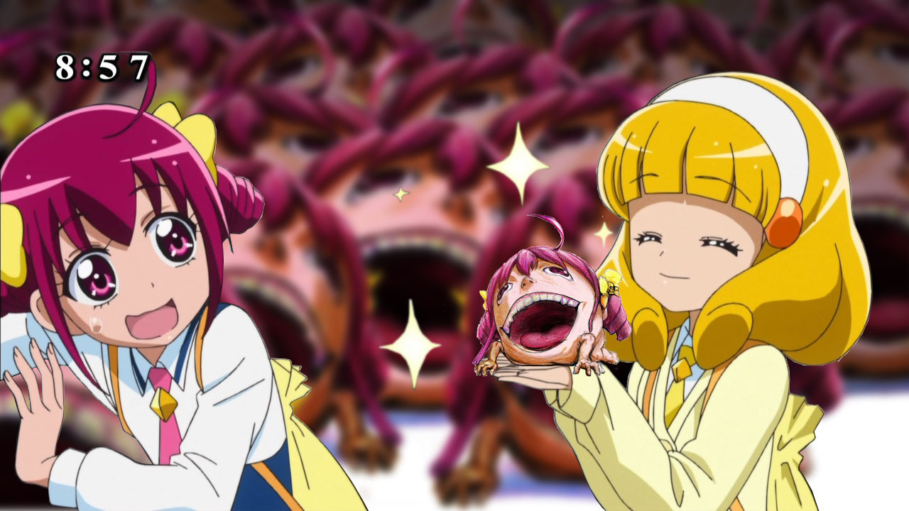 Так называемый Cure Unhappy Incident, который произошёл сразу после розыгрыша сундука с предсказаниями. В эпизоде #13 Smile Precure!Хорошенькое лекарство: Улыбка лицо Miyuki HoshizoraМиюки Хосидзора было превращено в причудливый фэйс-гэг, когда она вытянула предсказание, обещающее неудачи, что взбудоражило фанатов и породило кучу мемов