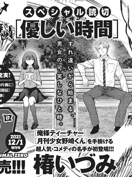 В декабрьском номере Young Animal Zero Идзуми Цубаки опубликует ваншот «Yasashii Jikan». Журнал выйдет 9 ноября.