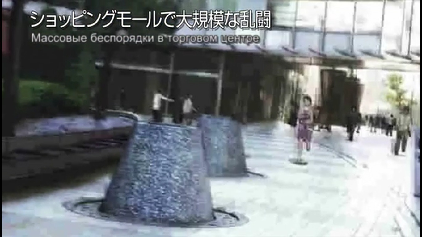01:07 - кинематографическая пауза в конце речи Куратора перед опенингом. 03:25 - Монтаж через моргание экрана или снимки действий для всякой бытовухи. 03:43 - зернистость, артефакты съёмки, такое и в начале было, немного иная разновидность кинематографической паузы. На 04:26 тоже - видимо, способ показать, что это прошедшие события. 05:12 - ещё раз. 05:55 - ещё раз. 06:34 - ещё раз. 10:47 - ещё раз