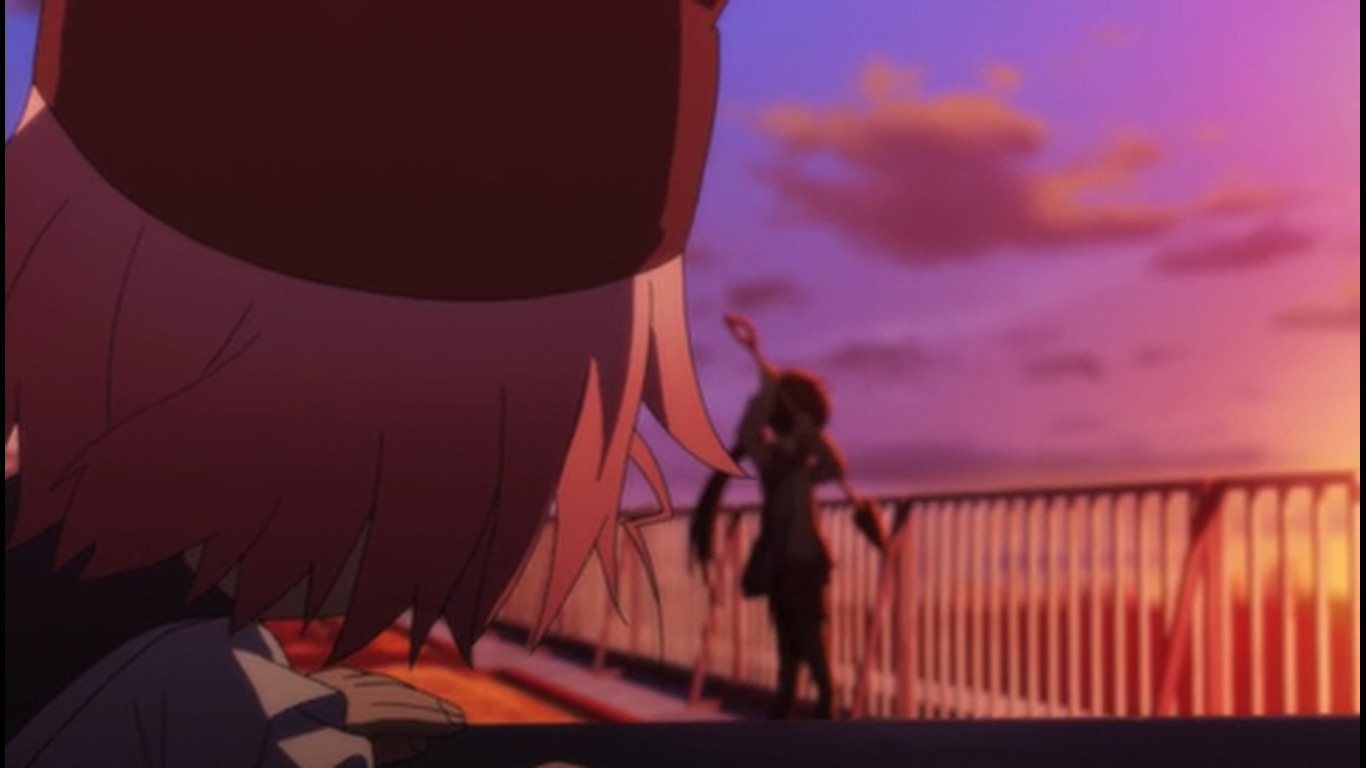 16:32 - Фокус на объект в глубине кадра, блюр на объекте спереди - перевод фокуса на объект спереди кадра, предыдущий объект переходит в расфокус. Сакура: ну, а до тех пор буду защищать их любой ценой. ПОТОМУ ЧТО Я ИХ УЧИТЕЛЬ. 16:47 - кинематографическая пауза. 19:03 - кинематографическая пауза