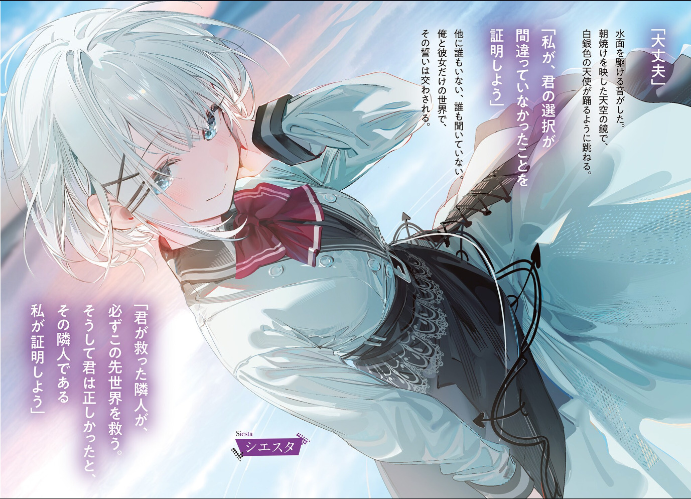 Меня, обыкновенного старшеклассника Кимидзуку Кимихико, который легко впутывается в проблемы, назначили присматривать за таинственным дипломатом таинственные люди в чёрных костюмах. Познакомившись в угнанном самолете с красивой, похожей на ангела девушкой-детективом по имени Сиеста, я стал её помощником. Нам было тяжко выживать вместе, но мы справлялись.