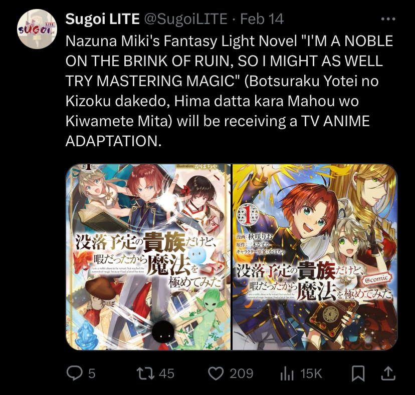 Botsuraku Yotei no Kizoku dakedo, Hima Datta kara Mahou wo Kiwametemita